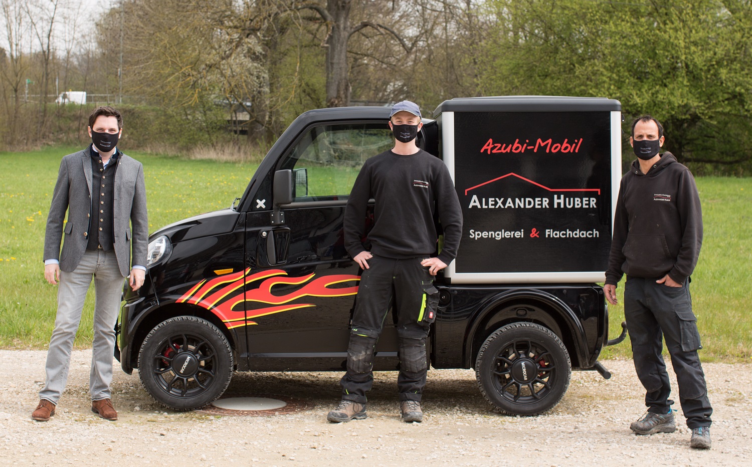 „Wir verbringen teilweise mehr Zeit mit unseren Mitarbeitern als mit unseren Familien – da ist es wichtig, dass man sich gut versteht und Spaß an der Arbeit hat“, so der Spenglermeister. Sein Betrieb wurde 2004 mit einem Mitarbeiter gegründet und besteht mittlerweile aus acht Beschäftigten. „Wir werben seit vielen Jahren für das Handwerk, gehen an Schulen, nutzen die sozialen Medien und setzen auch das eine oder andere ungewöhnliche Projekt um“, beschreibt Huber seine Strategie. So gibt es in seiner Firma seit kurzem ein sogenanntes „Mopedauto“, das mit einer Höchstgeschwindigkeit von 45 km/h bereits mit Führerscheinklasse M und 15 Jahren gefahren werden darf. „Unsere Auszubildenen kommen damit trocken und warm zur Arbeit, dürfen das Fahrzeug aber auch privat nutzen“, so Huber, der hierfür rund 15 000 Euro investiert hat.