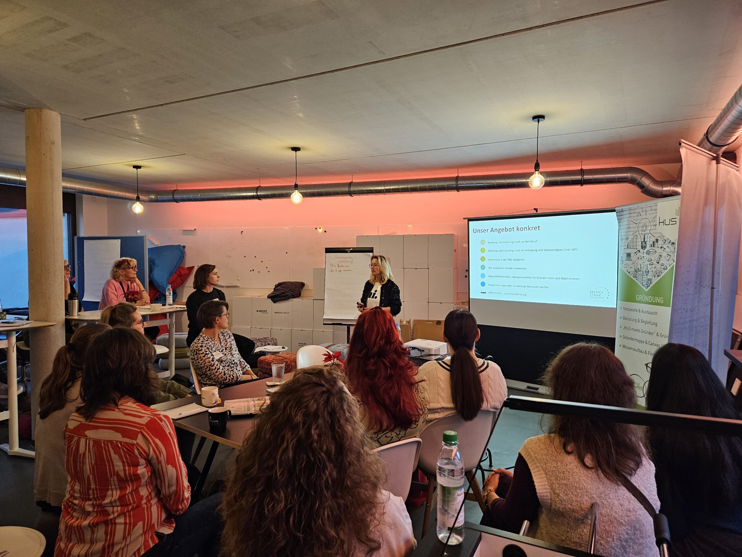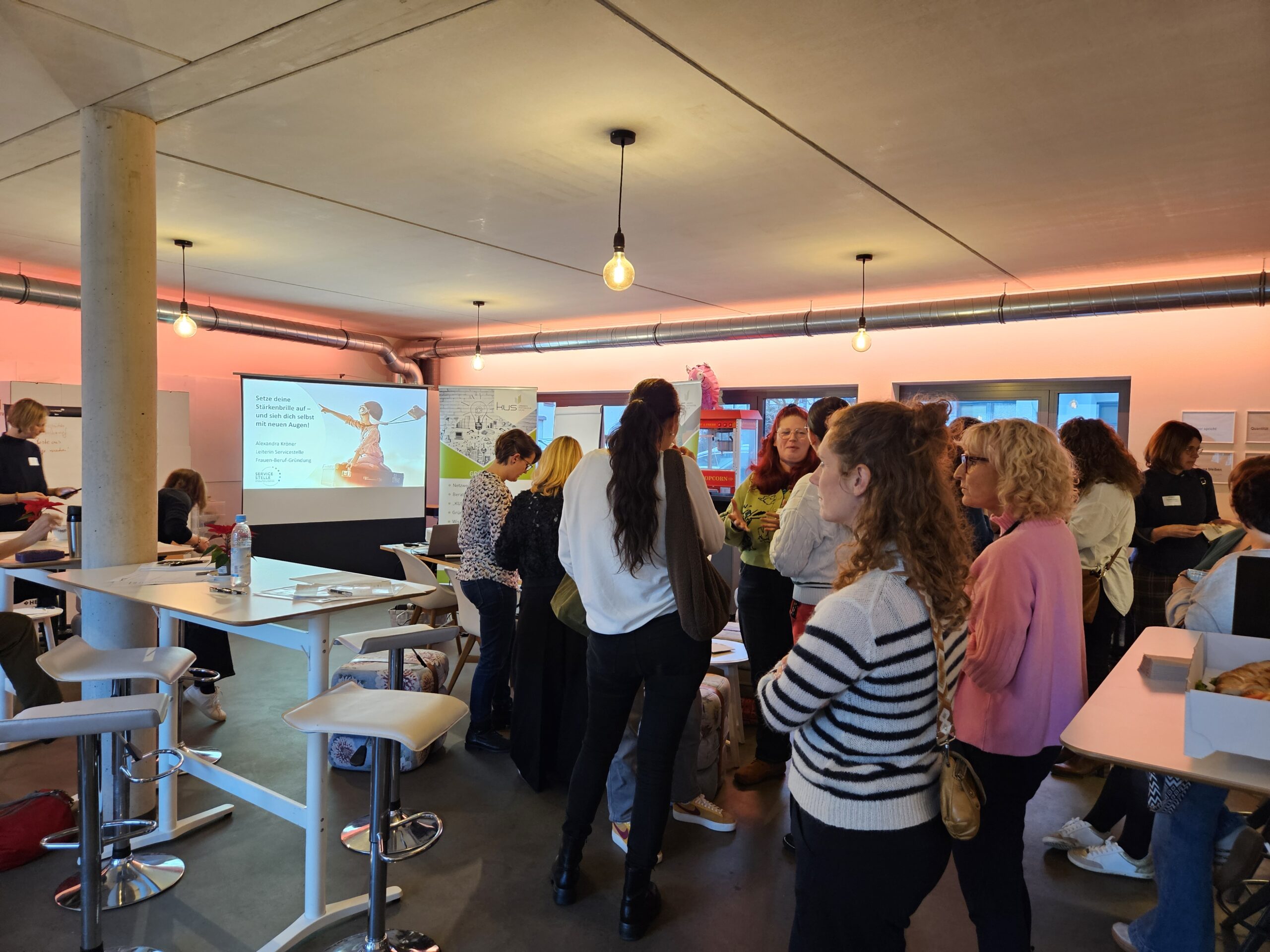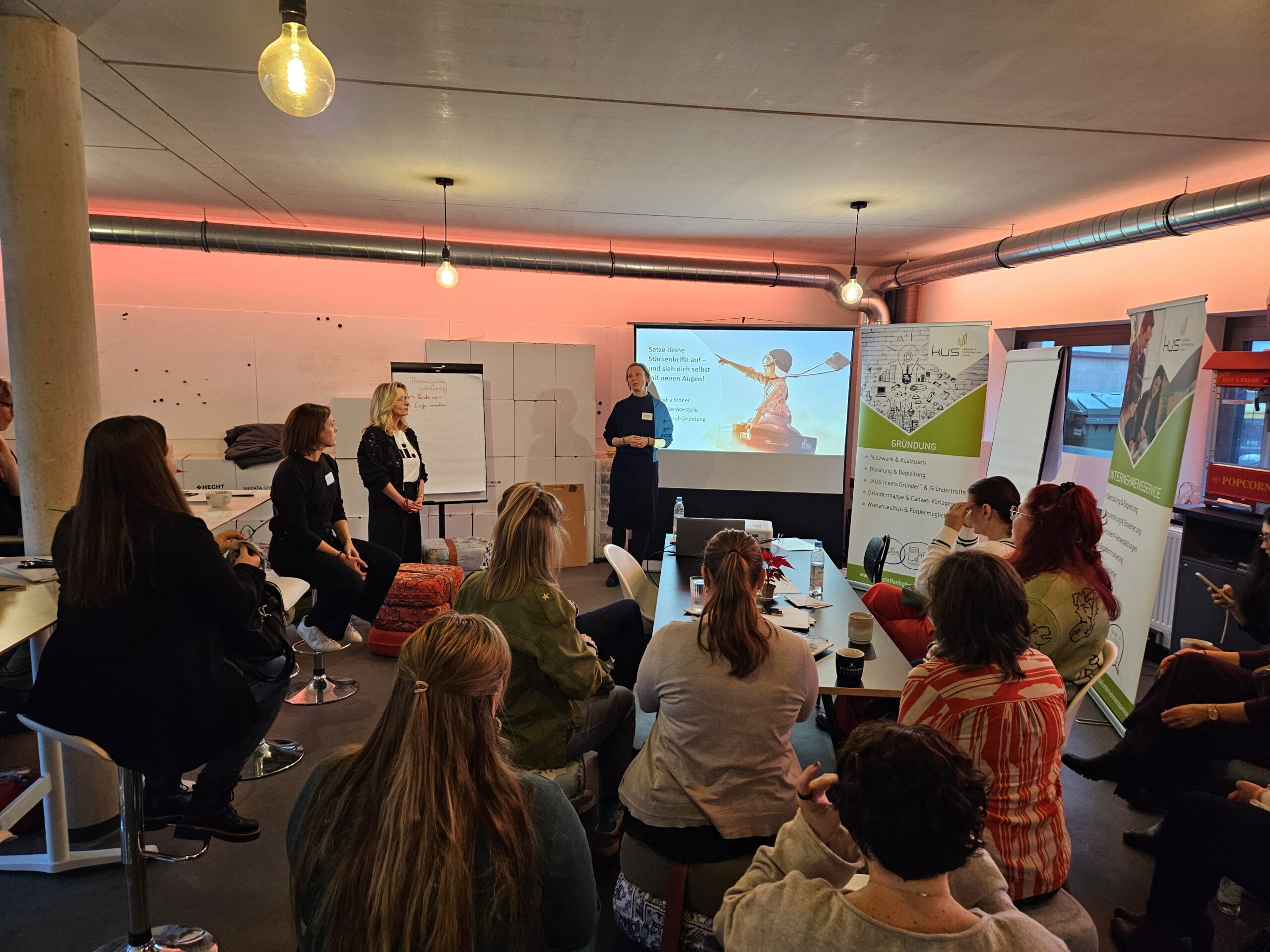 Wie viel Energie entsteht, wenn Frauen ihre eigenen Stärken erkennen und bewusst einsetzen, zeigte der letzte KUS-Gründerinnentreff des Jahres. Rund 30 Gründerinnen und selbstständige Frauen folgten der Einladung des Kommunalunternehmens Strukturentwicklung Landkreis Pfaffenhofen a.d.Ilm (KUS) und tauchten gemeinsam mit Alexandra Kröner, systemischer Coach und Stärkencoach der Servicestelle Frauen-Beruf-Gründung (FBG), in das Thema Stärkenorientierung ein.